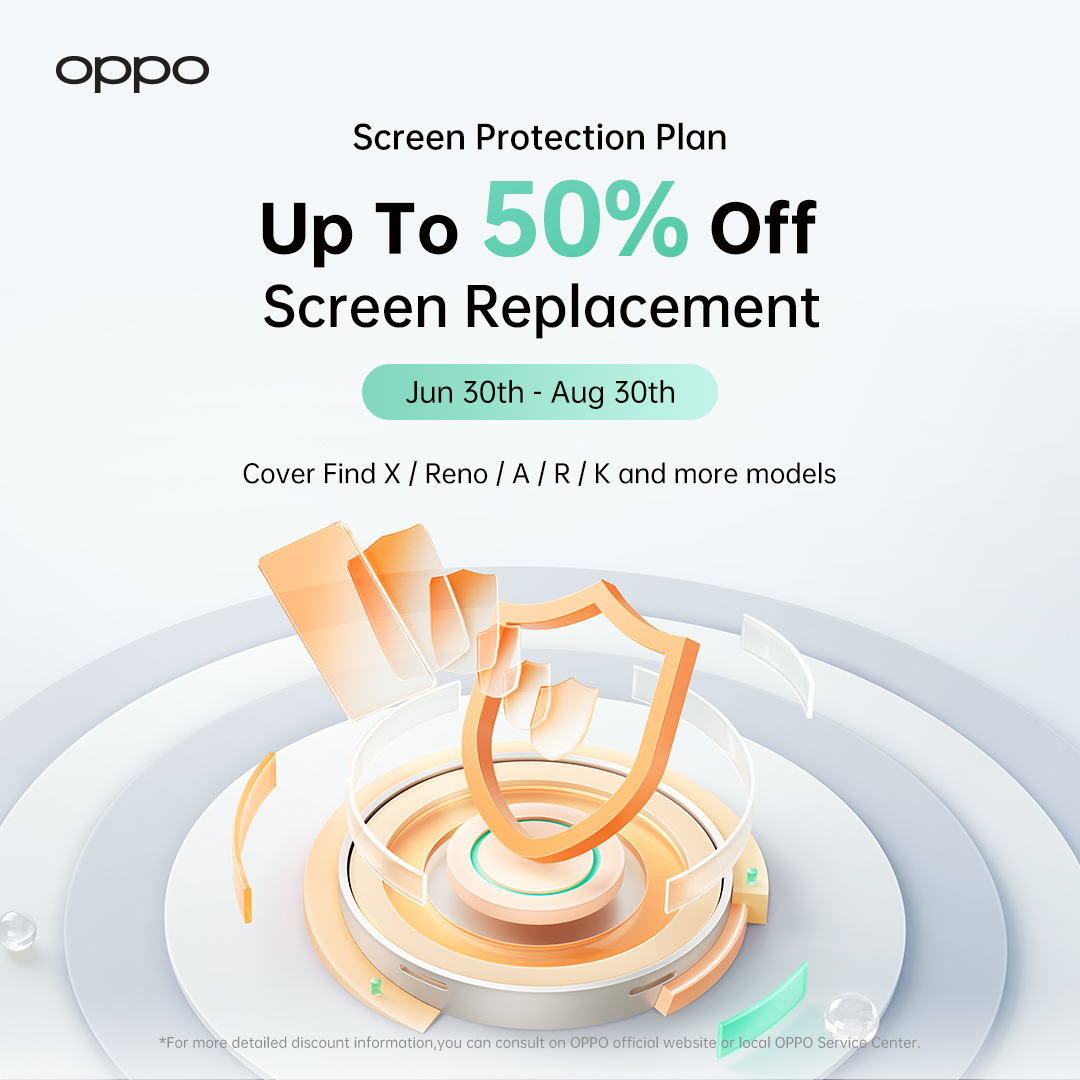 The campaign covers new and old phone models such as Find X, Reno, R, A series, etc. And OPPO users can enjoy up to 50% discount and abundant forms of screen-care activities at the OPPO Official Service Center.