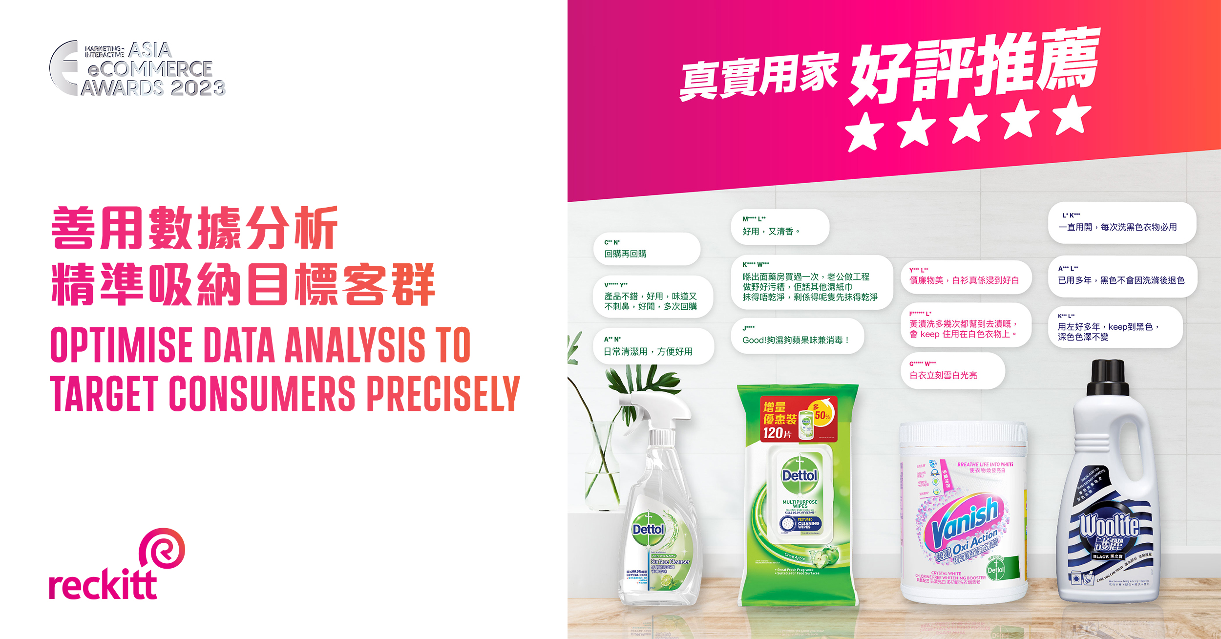 Media OutReach - 24 November 2023 - Reckitt Hong Kong was awarded Bronze in "Best eCommerce Campaign - Content Marketing" and shortlisted for the newly launched category of "Best Use of Analytics and Data Insights" at Marketing Interactive's Asia eCommerce Awards 2023, recognising an exemplary performance of the Customer Review eCommerce Campaign, in which the refined ad targeting strategies and ad content with a "human touch" drove a significant growth of 533% in ROAS in June, compared to the average of offer-centric eCommerce campaigns from January to May 2023.