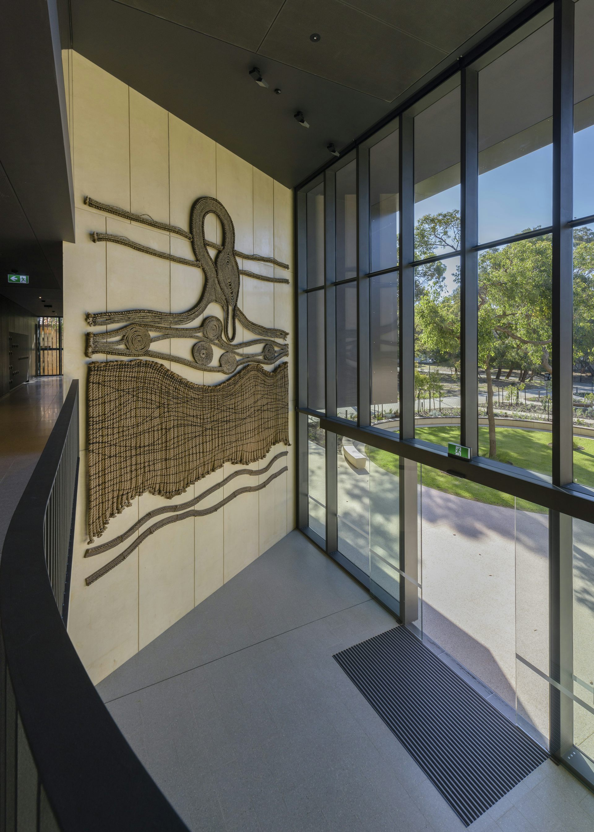 The building was culturally designed by Indigenous Elder Dr Richard Walley, with input from staff and students. Upon consultation, Dr Walley used a cultural blueprint to inform the design process which included connection to place and its surroundings. This includes the connection to plants and animals of the area and their significance to that place.