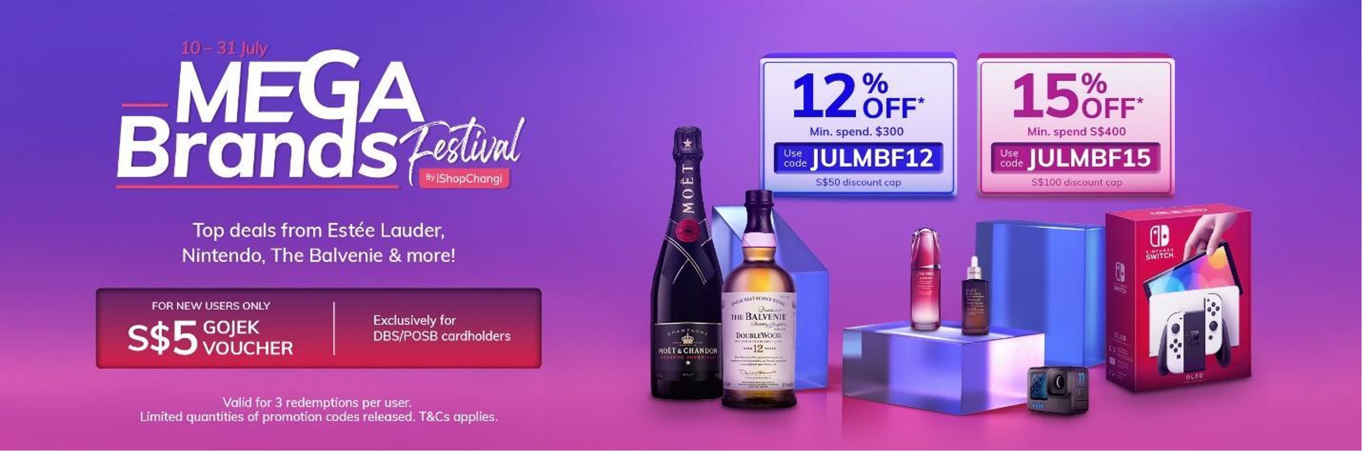 | JULMBF12 | 12% off* with min. spend S$300, capped at S$50 |